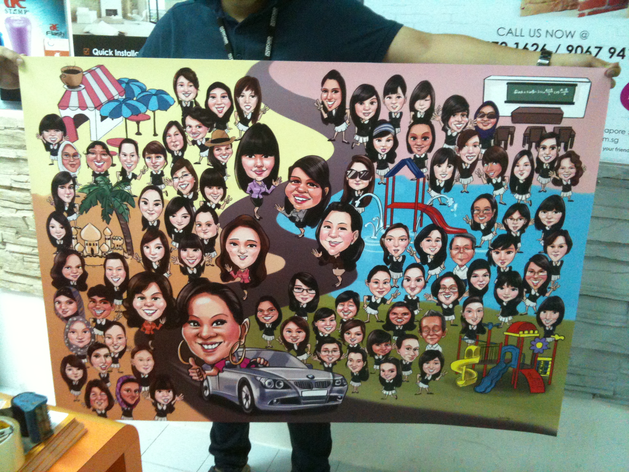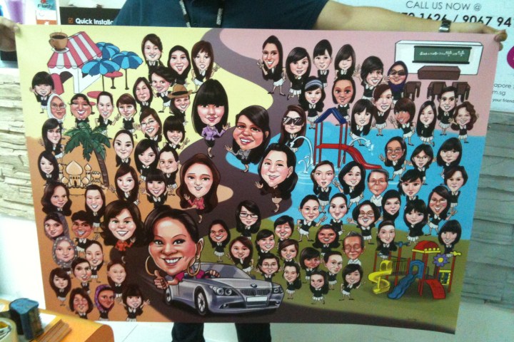 Group caricature with someone’s farewell: